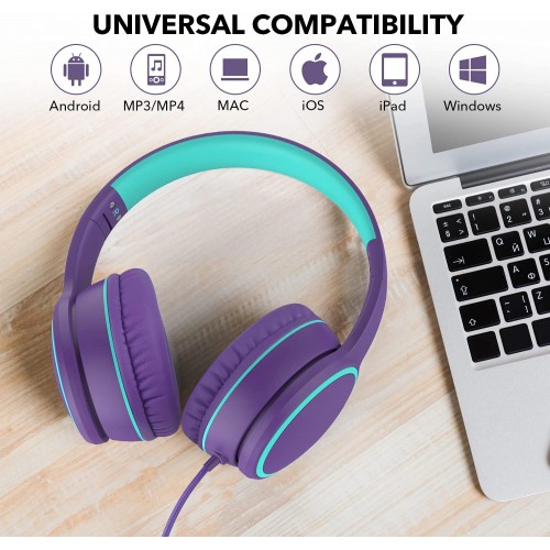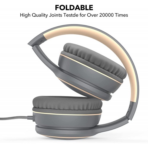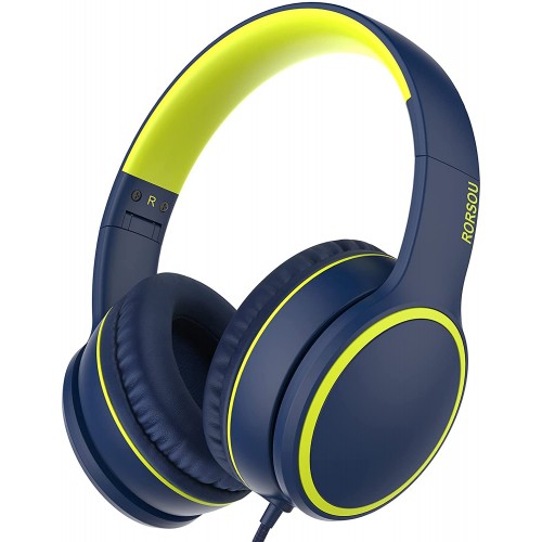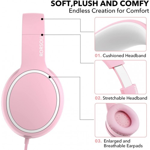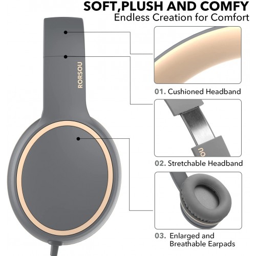 RORSOU R10 On-Ear Headphones with Microphone, Lightweight Folding Stereo Bass Headphones with 1.5M No-Tangle Cord, Portable Wired Headphones for Smartphone Tablet Computer MP3 / 4 (Black)